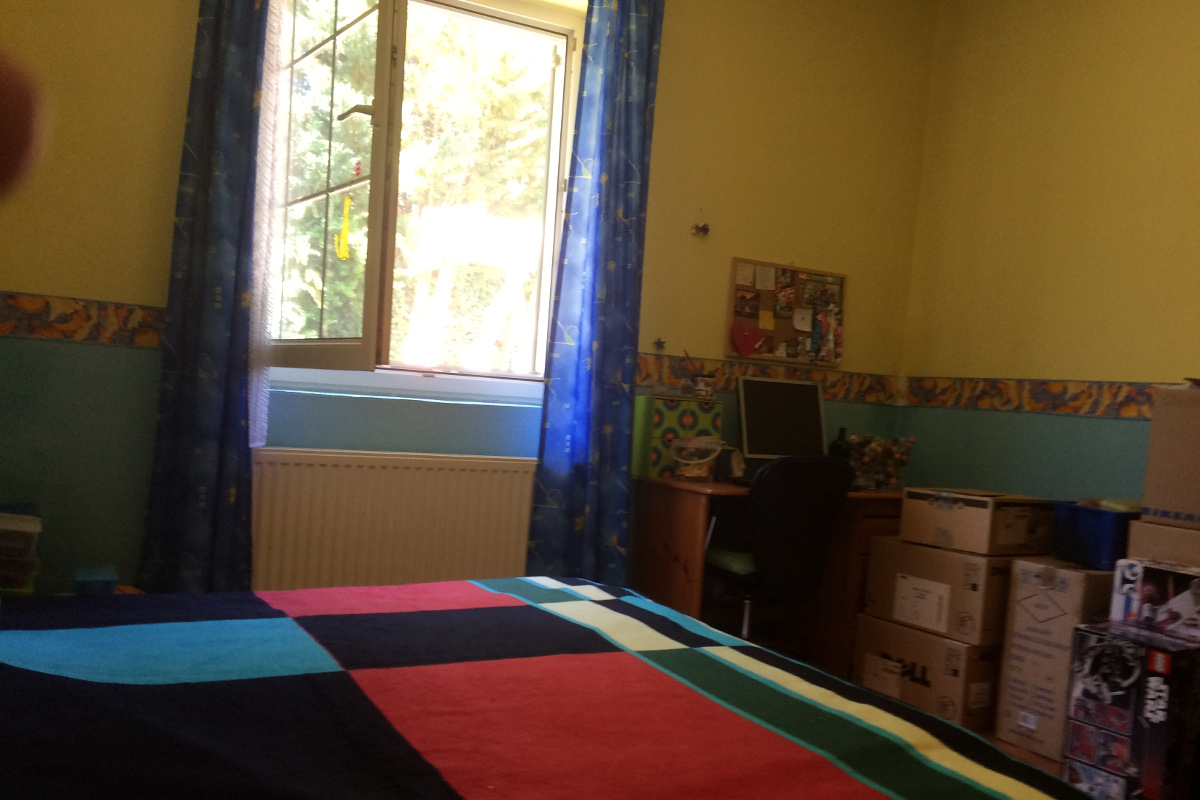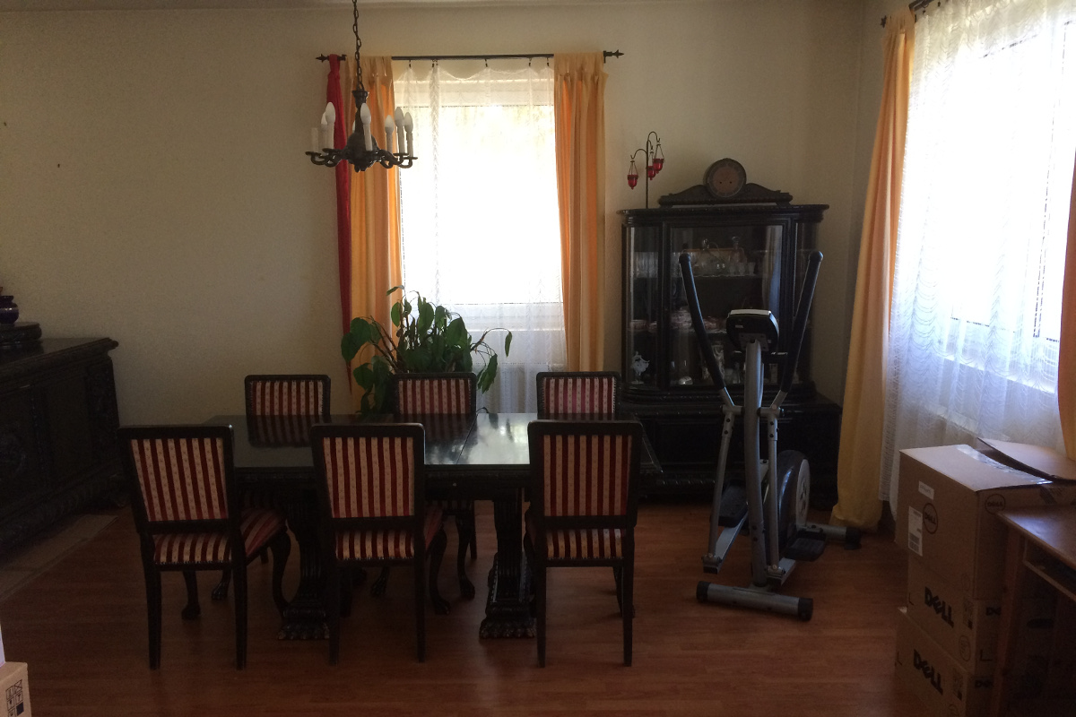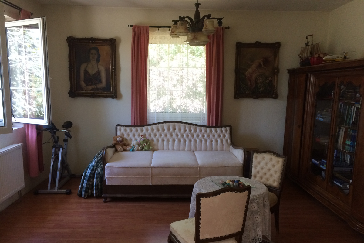 A felső szintten lévő nappali laminált padlóburkolattal rendelkezik.