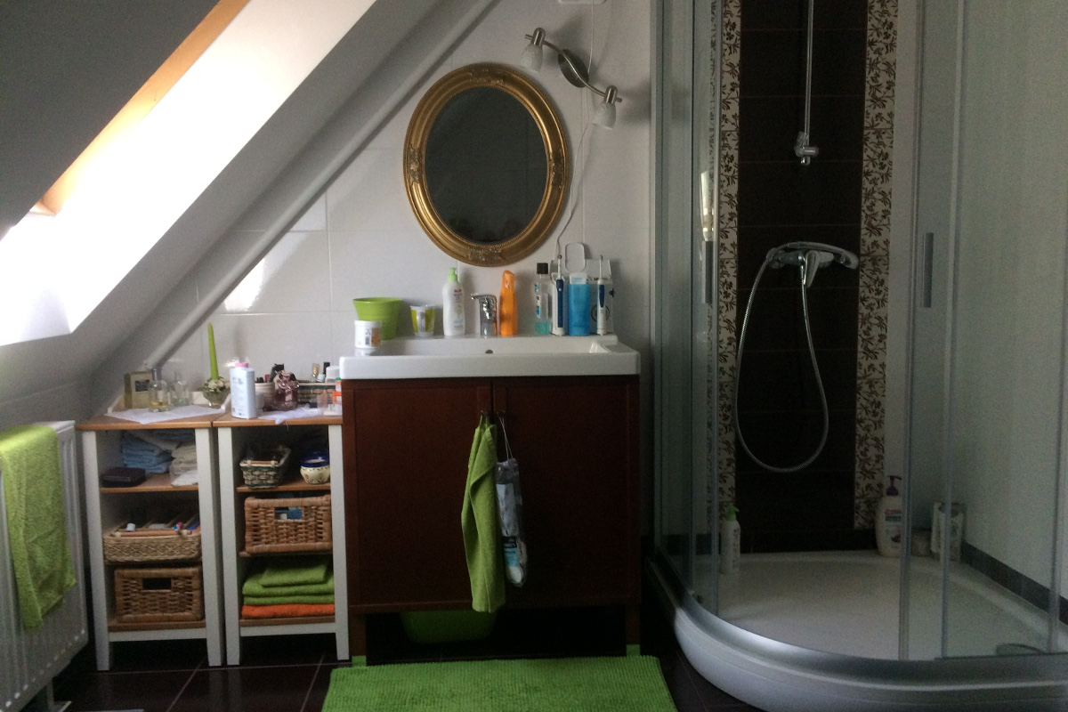 A fürdőszobák kialakítása és dizájnja az építés évének megfelelő. A egyik fürdőszoba csak zuhanypanellel és Wc-vel ellátott, míg a másik egy fürdőkáddal, WC-vel és bidével felszerelt.