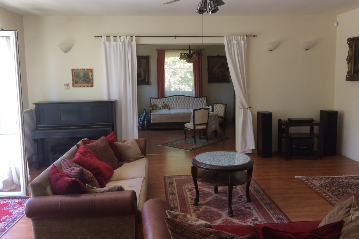 Szentendre külső részén a Skanzen mellett jól megközelíthető üdülőövezetben található ez az 1999-ben épült kúria jellegű családi ház.